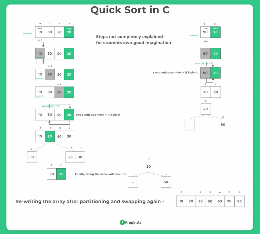 Array after Quick Sorting: 10 20 30 50 60 70 90