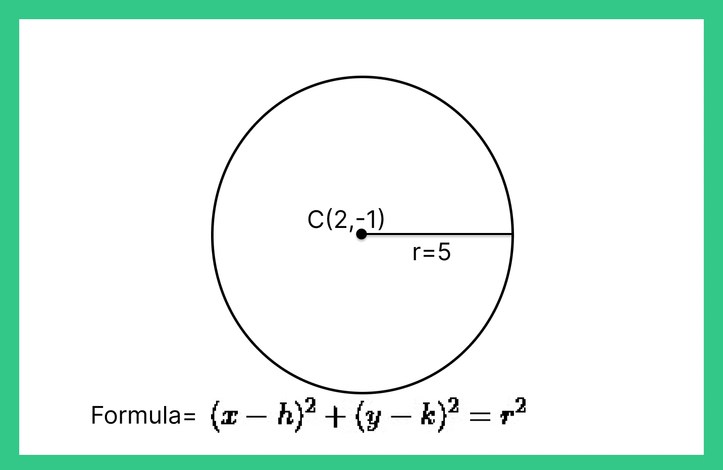 For this circle: = (x-h)^{2} + (y-(-1)^{2} = r^{2}=5^2 (x – 2)^2 + (y + 1)^2 = 25