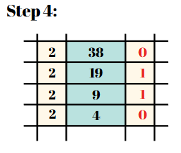 - As we divide the number by 2 repeatedly, we record the remainder obtained in the process.