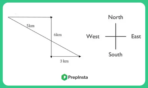 Ricky after travelling for 5 km took right turn and travelled 6 km before taking left turn and then travelled for 3 km. Find his final distance from home.