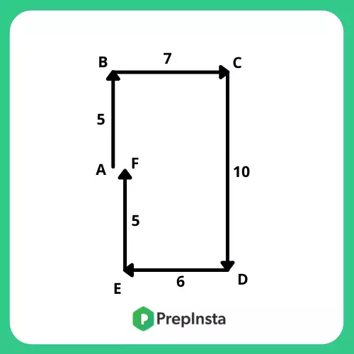 Sam walked 5m towards north from point A and reached point B. He took a right turn from point B and walked 7m and reached point C. He took a right turn from point and walked 10m to reach point D. He took another right turn from point D and walked 6m to reach point E. Sam took a right turn from point E and walked 5m to reach point F.