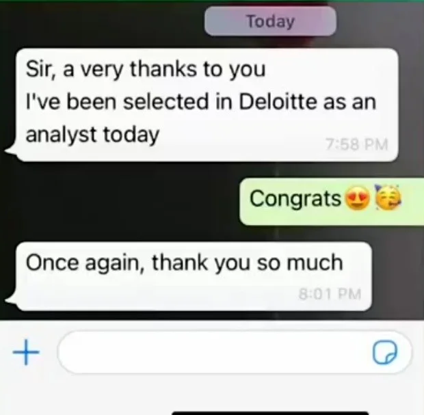 Deloitte Visited our campus for BTA Profile. My seniors suggested I prepare from PrepInsta Deloitte Online Course and their Paid Materials. Their mentors guided me daily over calls and messages regarding my preparation strategy to crack it with a good score. I'm thankful for the wonderful sessions they had with me and I finally am placed in Deloitte USI. Special Thanks to Atulya Sir, Manish Sir, and Aashay Sir