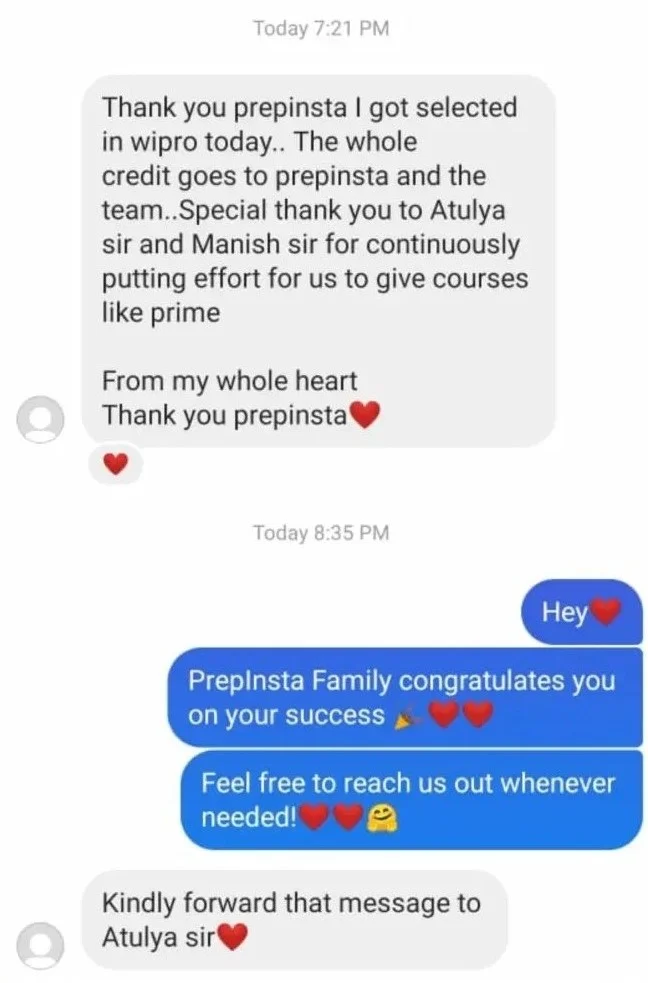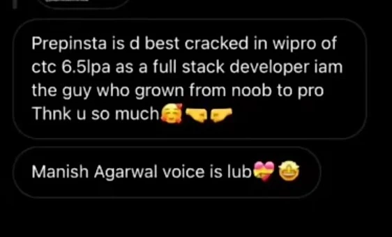 I want to thank all the teachers who have taken Wipro Online Class. I was not aware of the pattern and syllabus, but due to PrepInsta, I cleared my Wipro Exam.