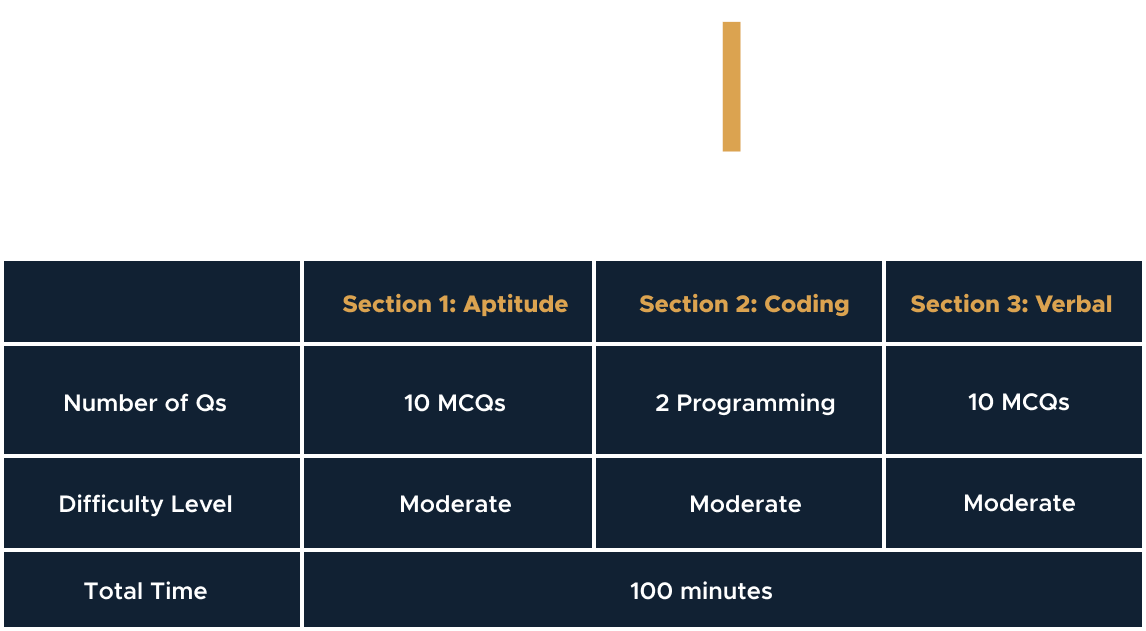 There will be 3 sections – Aptitude (10 MCQ’s), Coding (2 Questions) & Verbal question (10 MCQ’s), thorough syllabus is given in the page only check above.