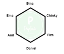 Six people Anil, Bina, Chinky, Daniel, Ema, and Fiza sits at six corners of a hexagon table. Anil does not sit adjacent to Bina or Chinky. Daniel does not sit adjacent to Chinky or Ema. Bina and Chinky are immediate neighbor. Fiza sits between Daniel and Chinky.