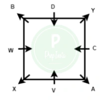 A, B, X, Y, C, D, V, and W are sitting around a square table for office meeting. They are sitting in such a way that four are at the corners and four are at the sides. The people sitting at the sides faces at the center and people sitting at the corners faces outside.