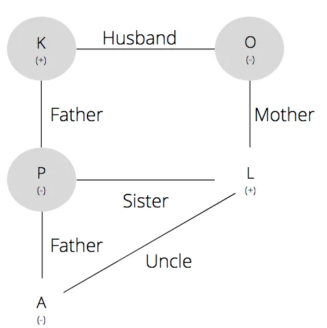 A is the son of P, P is the daughter of K, K is the husband of O and O is the mother of only son L. What is L to A?
